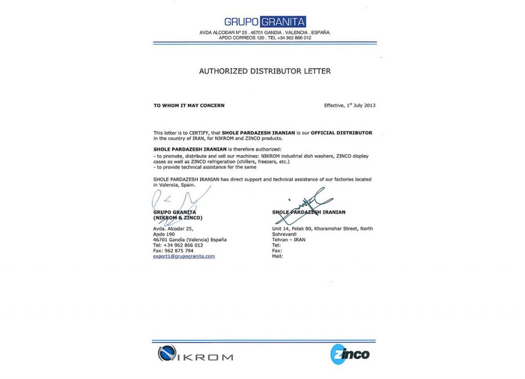 فرم نمایندگی شرکت های ZINCO-IKROM-NIKROM اسپانیا