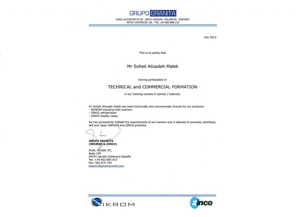 دوره آموزش و نگهداری شرکت های ZINCO-IKROM-NIKROM-اسپانیا