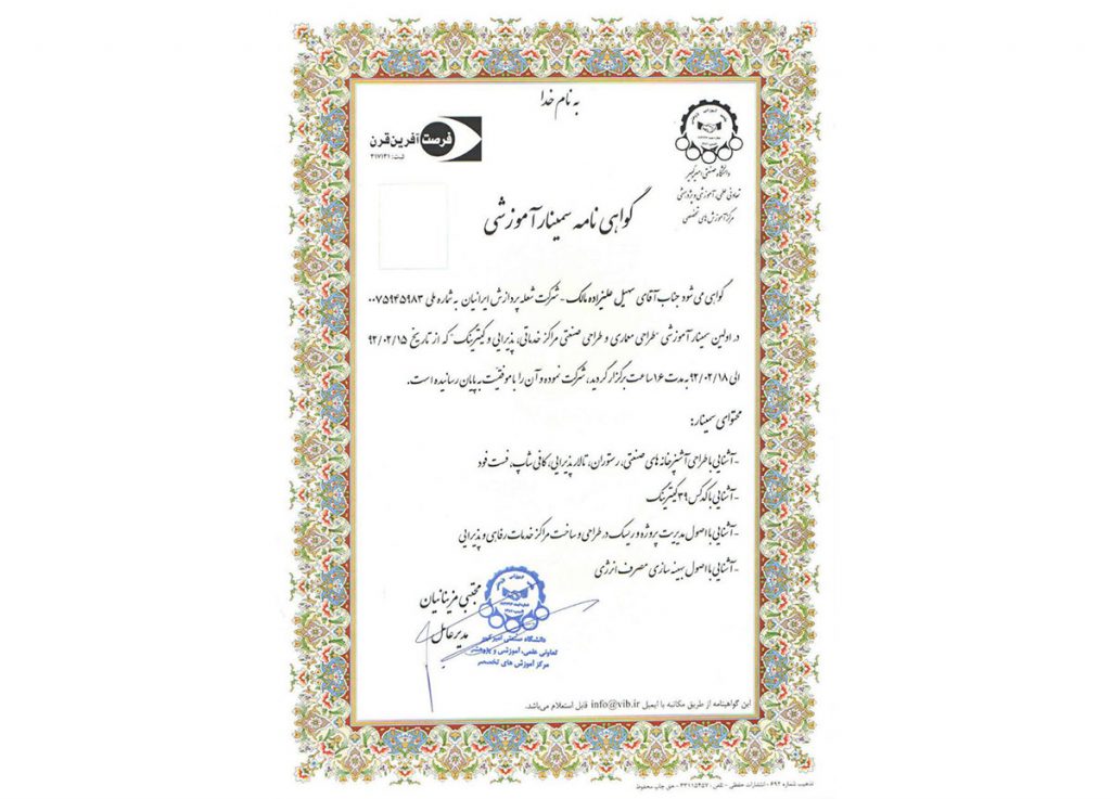 گواهینامه سمینار آموزشی